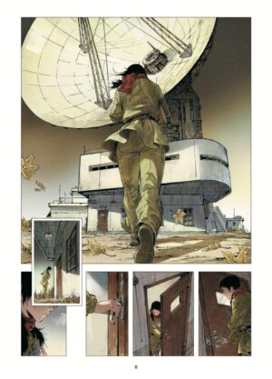 No se va mucho del libro, sí que hay partes que se omiten, obviamente, pero el conjunto es el de una obra muy consistente capaz de sobrevivir por sí misma. Es curioso el peso que le dejan, no hay grandes textos de narración, sí mucho diálogo, con lo que el arte tiene la presencia que se merece. Es decir, no se siente como una adaptación excepto por una parte sobre el origen de la Profesora Ye, demasiado resumida en apenas una página y sin imágenes, precisamente la parte con mayor carga política que no tiene tanta presencia en el cómic y le resta algo de peso al final de la obra. Pero realmente esa es la única mala crítica que se me ocurre, El problema de los tres cuerpos en cómic funciona como un tiro, quizás en cierta medida por esa ligereza narrativa de la obra original que hace que se traslade bien a imagen, incluso en las partes que se mete en profundidad en la ciencia. Hasta el color, cambiante y que no solo embellece el dibujo sino que crea unas atmósferas perfectas, destaca en un apartado gráfico más que solvente. Ayuda también el formato de Yermo, fuerte, de buen papel y tamaño, para mejorar la experiencia en un tomo que destaca por su apartado gráfico.