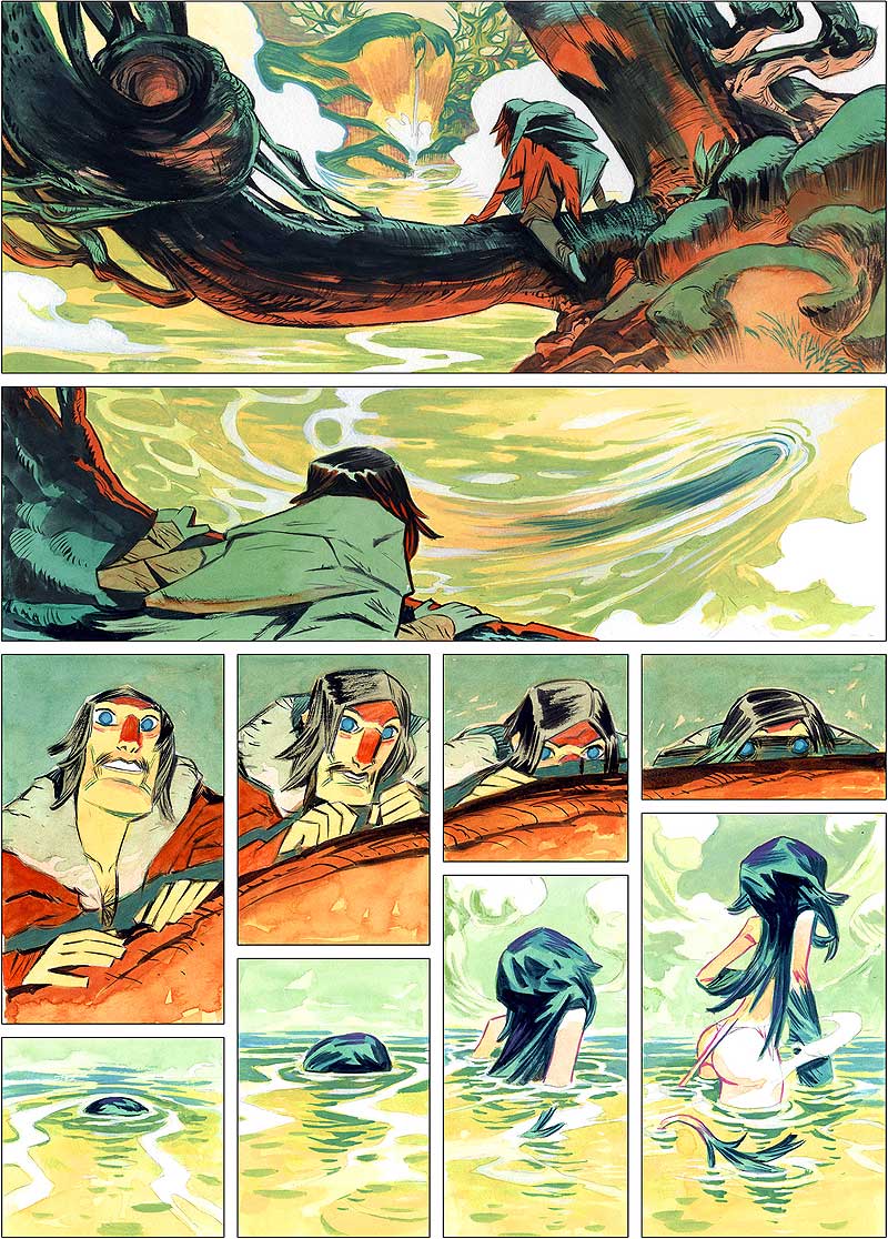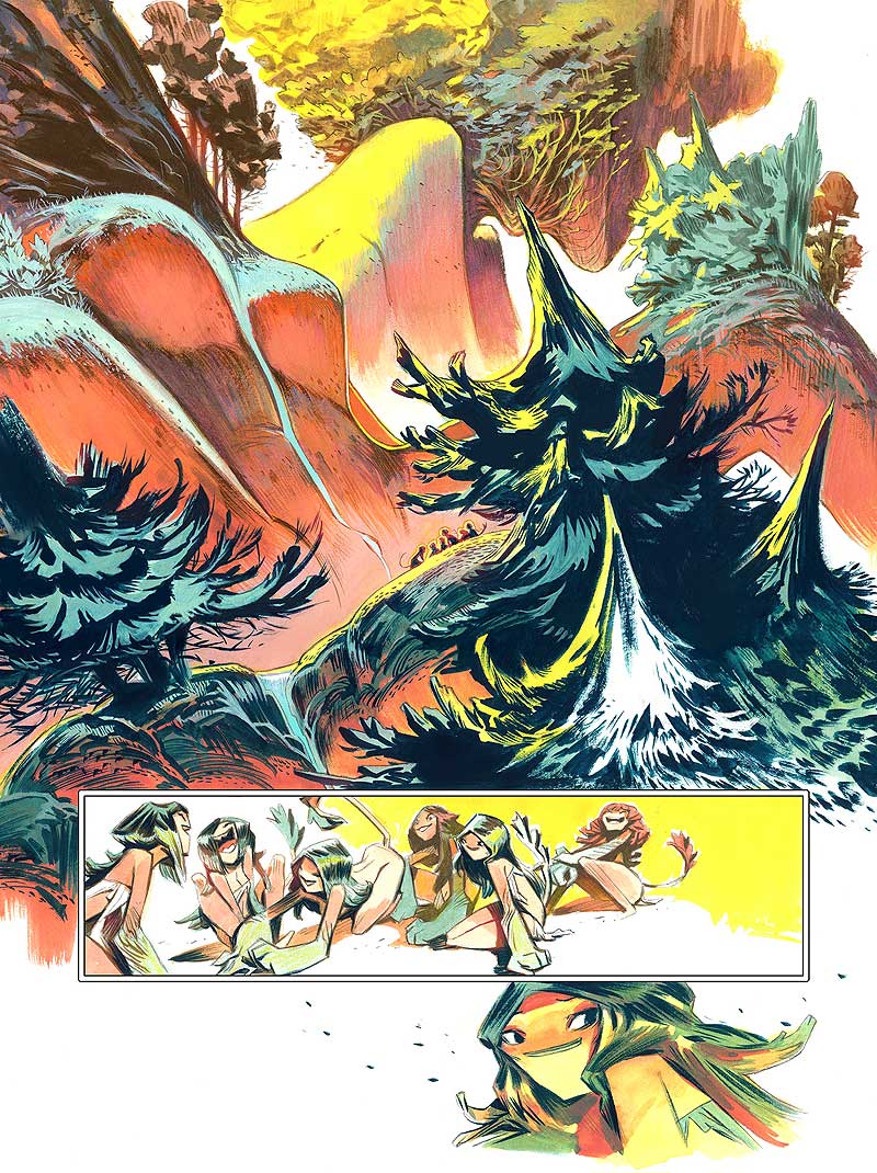 No puedo recordar de donde surge cada historia en concreto. En este caso quería una historia de amor adolescente, muy pura e instintiva. Imagino que ambientarla en el bosque ha surgido de forma natural en el momento en que quiero que tenga un aire de cuento fantástico. Me inspira mucho pasear por el bosque y encontrar rincones que dan alas a la imaginación. Tenemos mucho bagaje de tradiciones fantásticas, de cuentos que transcurren en bosques y de seres inventados para aportar conocimiento sobre la vida y nuestro comportamiento. Este tipo de material me viene muy rápido a la cabeza cuando paseo por según que sitios que tienen un halo fantástico, único. Y me gusta la posibilidad de ambientar una historia aprovechando ese tipo de recursos.
