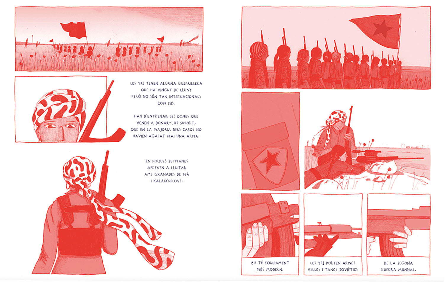 Todas las historias son emocionantes, quizás la que destaca es la titulada Luci en la que Cusó nos muestra las dos caras de la lucha femenina en Rojava, Siria, en la época de mayor impacto del Isis. Es la lucha de una voluntaria occidental que se enrola en la yihad frente a las mujeres soldado de los frentes de liberación kurdos. Una historia terrible, plasmada en imágenes de una forma bellísima.